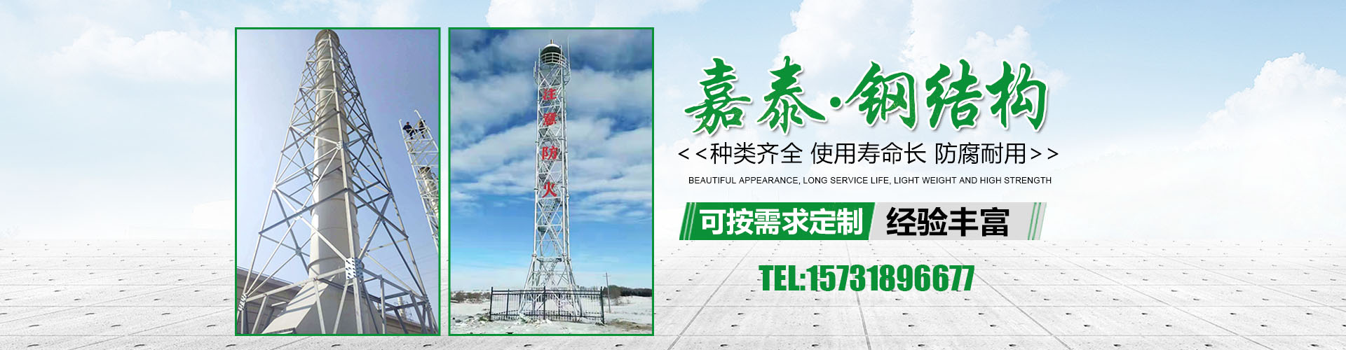 衡水嘉泰鋼結(jié)構(gòu)有限公司位于鐵塔制造之鄉(xiāng)-衡水市景縣廣川經(jīng)濟(jì)開(kāi)發(fā)區(qū),石德、京九鐵路交匯處,距北京、天津、石家莊、濟(jì)南均在2小 時(shí)交通圈內(nèi),交通便利。公司主要產(chǎn)品有:避雷塔、監(jiān)控塔、瞭望塔、消防訓(xùn)練塔、電力架構(gòu)、樓頂工藝塔、廣播電視塔、煙囪塔、測(cè)風(fēng)塔 、電力塔、單管塔、雷達(dá)塔、仿生樹(shù)塔、氣象觀(guān)測(cè)塔、路燈桿,一體化基站、ETC龍門(mén)架等,是一家集設(shè)計(jì),生產(chǎn),運(yùn)輸,安裝,維護(hù)為一體的廠(chǎng)家。主要服務(wù)于鐵塔公司、通信三大運(yùn)營(yíng)商、國(guó)防通訊,鐵路及森 ......